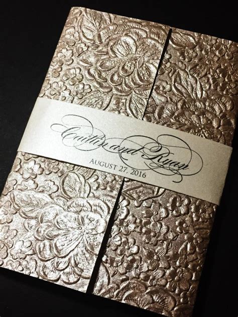 Custom embossed wedding invitations are a type of wedding invitation that uses a special process to create raised or sunken designs on the invitation. This is done by using a special machine or stamp to press the design onto the paper, creating a unique and luxurious look. This type of invitation is often used on thicker paper, such as cardstock, and can be used to create a variety of different designs, from simple to intricate. This type of invitation is perfect for those who want to add a touch of elegance and class to their wedding.